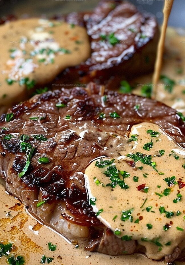 - Reintroduce seared steak bites into creamy garlic sauce, gently coating each piece. Briefly warm meat through for one minute, ensuring sauce clings to protein without overcooking.