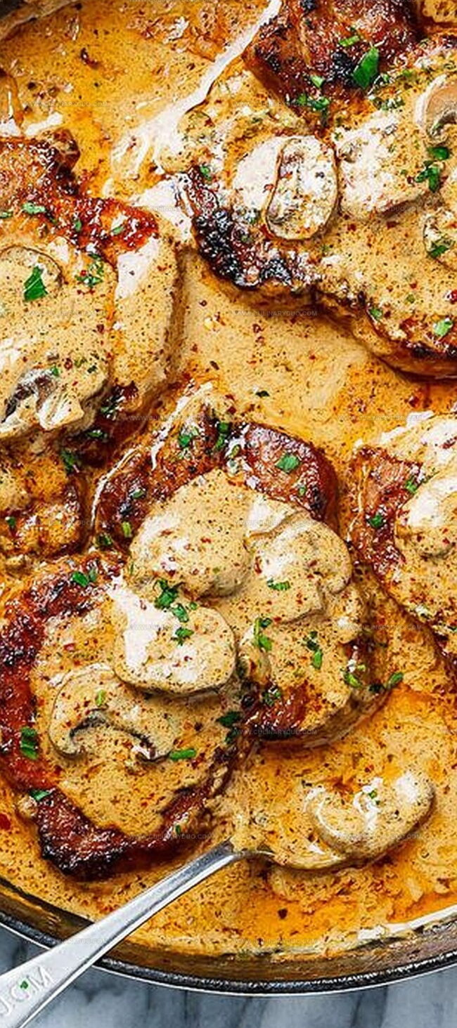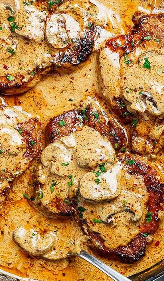 Garlic Pork Chops in Creamy Mushroom Sauce Recipe