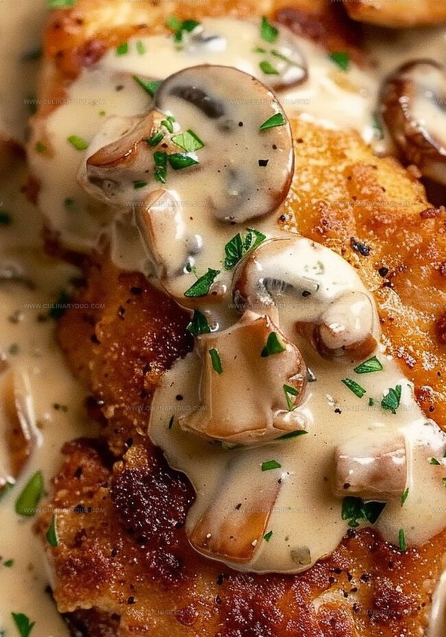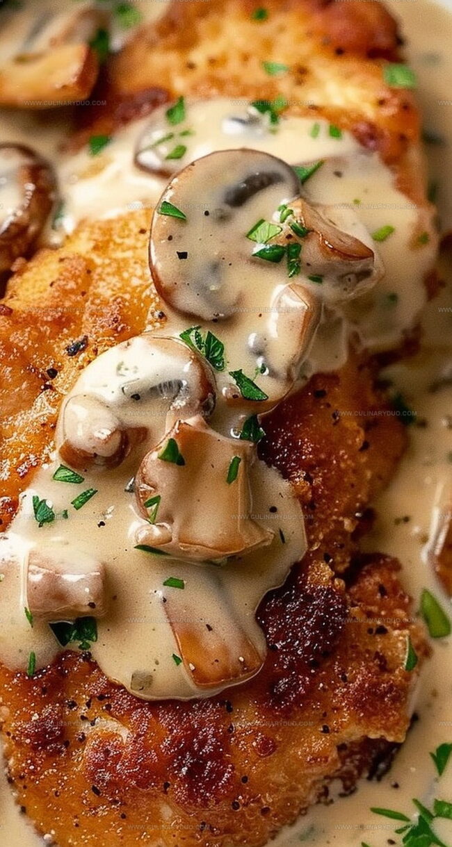 Succulent golden crispy chicken with creamy mushroom sauce brings elegance to weeknight dinners. Hearty flavors blend perfectly, creating a comforting meal that satisfies hunger and delights senses with each savory bite.