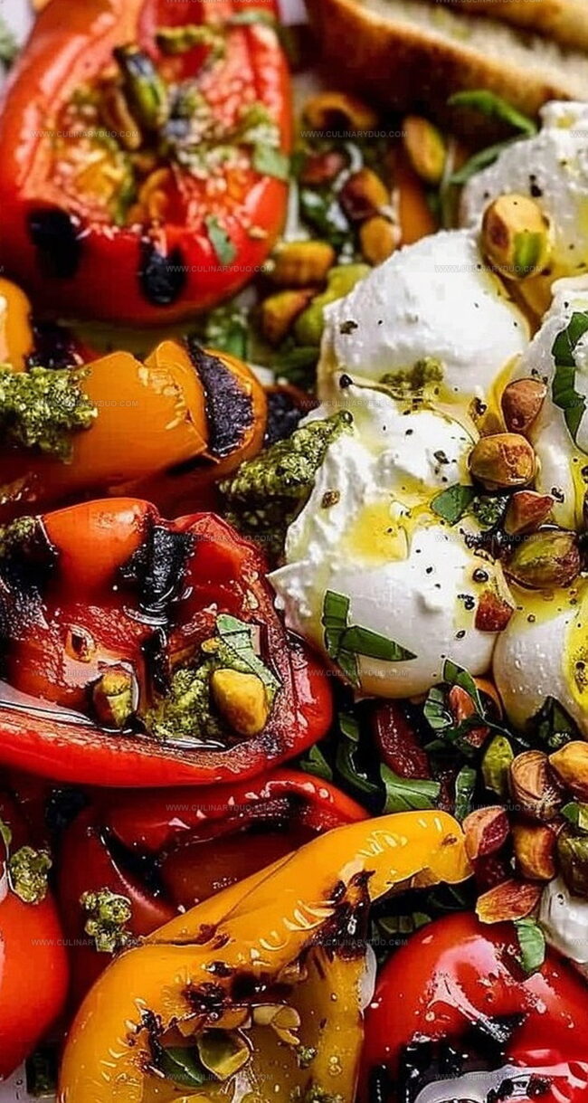 Vibrant and fresh, these grilled bell peppers with burrata dance with Mediterranean flavors that awaken every sense.