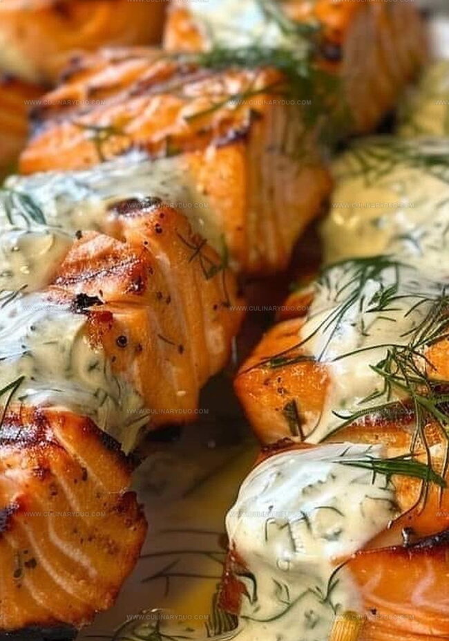Grilled Salmon Skewers with Creamy Dill Yogurt Sauce Recipe