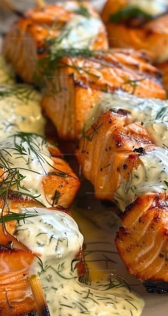 Sizzling Grilled Salmon Skewers with Creamy Dill Yogurt Sauce Recipe