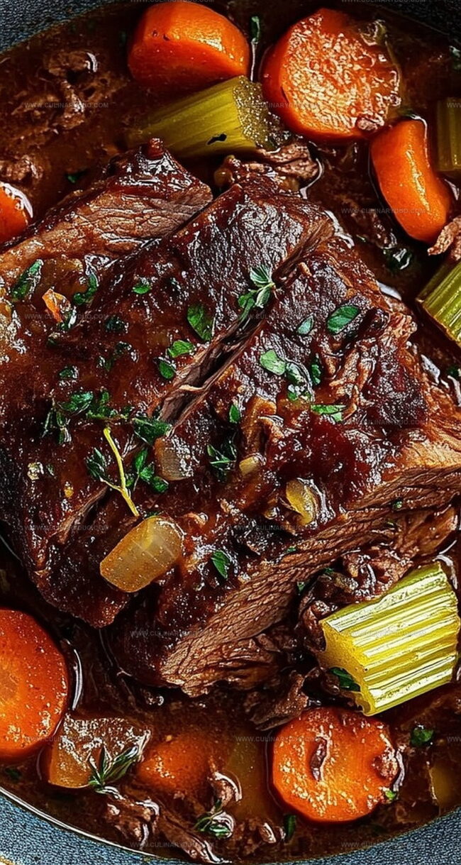 Hearty Beef Chuck Roast with Carrots, Celery, and Rich Beef Broth Recipe