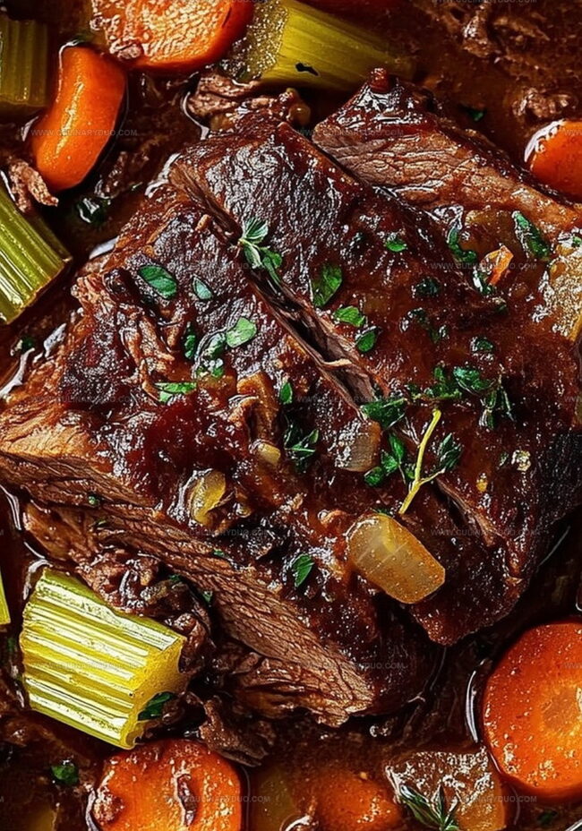 Savory beef chuck roast sings with rustic charm, blending tender meat, sweet carrots, and aromatic celery in a soul-warming broth. Rich flavors meld together, inviting you to savor each comforting spoonful of this classic home-style meal.
