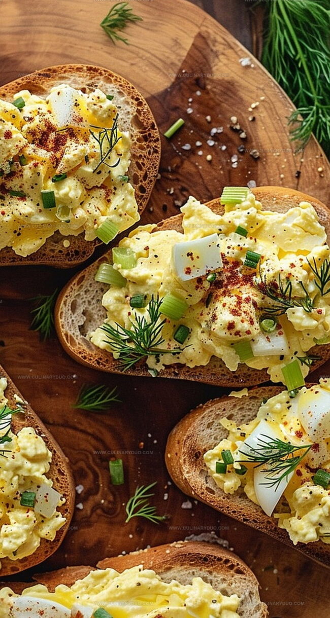 Crisp golden crostinis topped with a zesty herbed egg salad dance with fresh, vibrant flavors that instantly spark conversation.