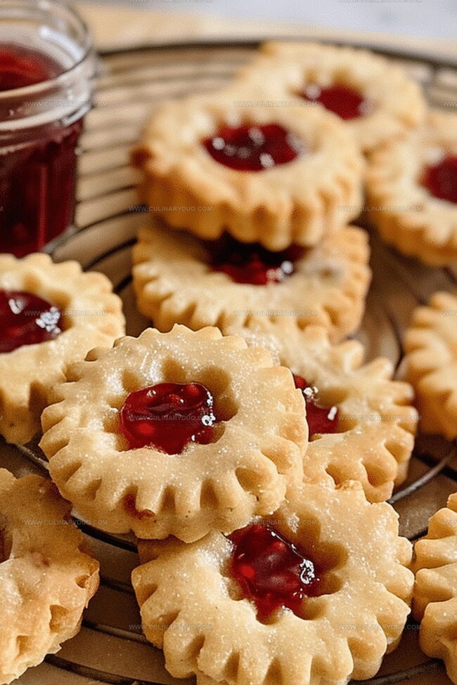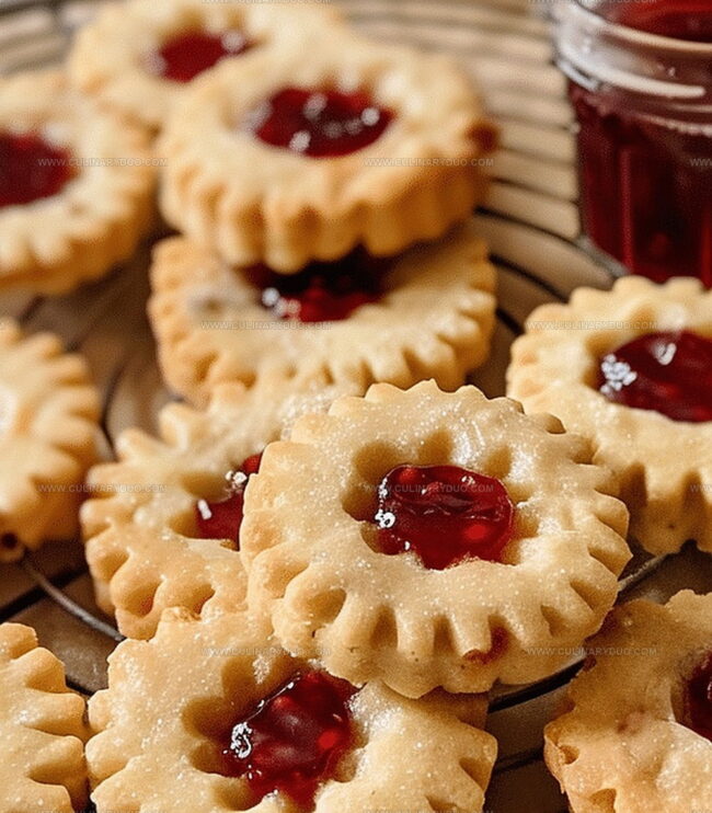 - Jam Selection Tip: Choose a high-quality, thick fruit preserve like raspberry or strawberry that won’t seep through the cookie, maintaining a clean and neat appearance.
