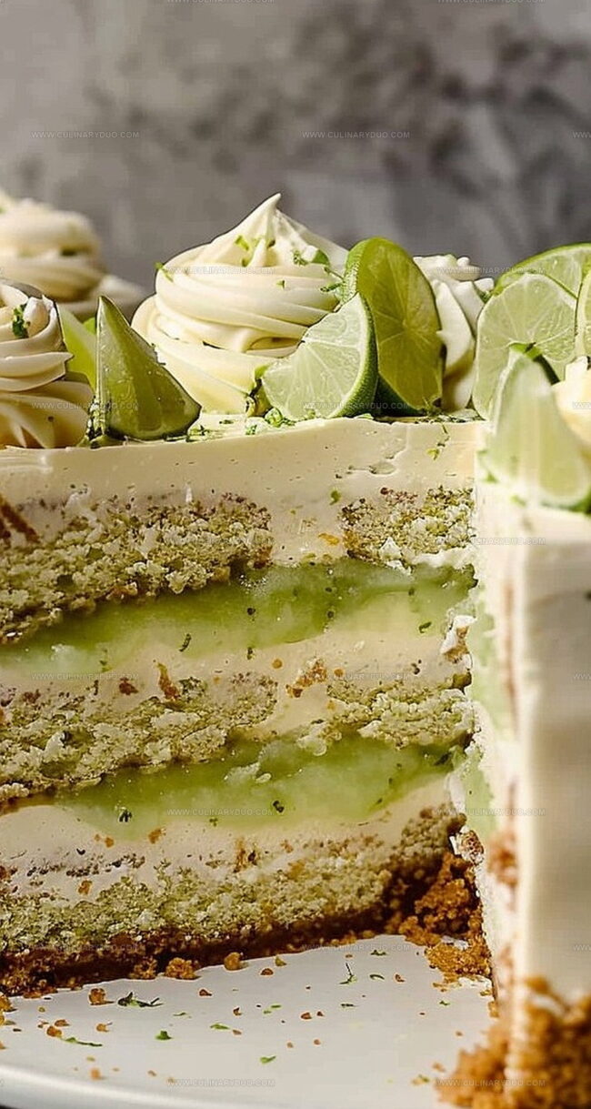 Creamy lime-infused frosting adds a luxurious touch to every slice.