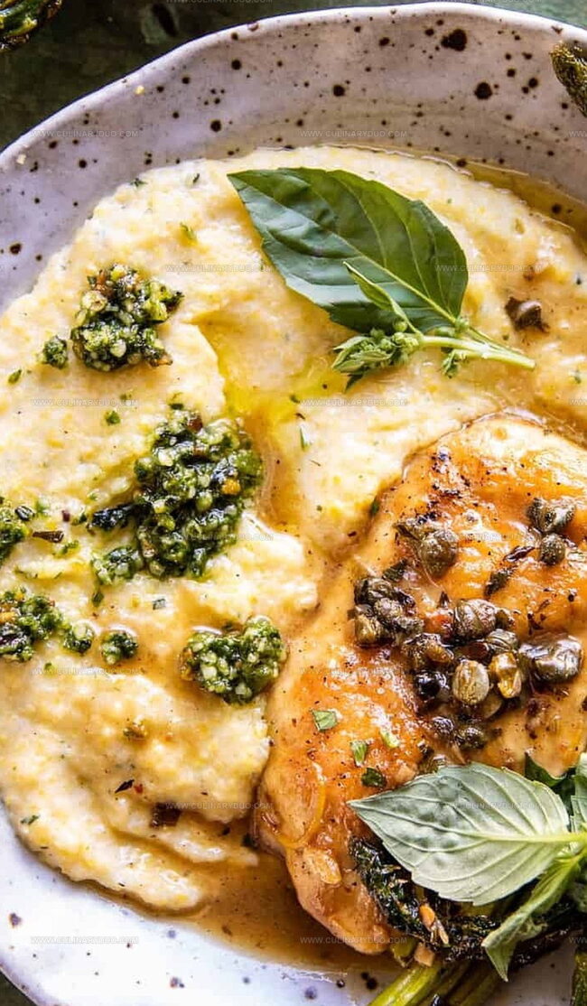 Zesty Lemon Butter Chicken Piccata with Pesto Polenta Recipe