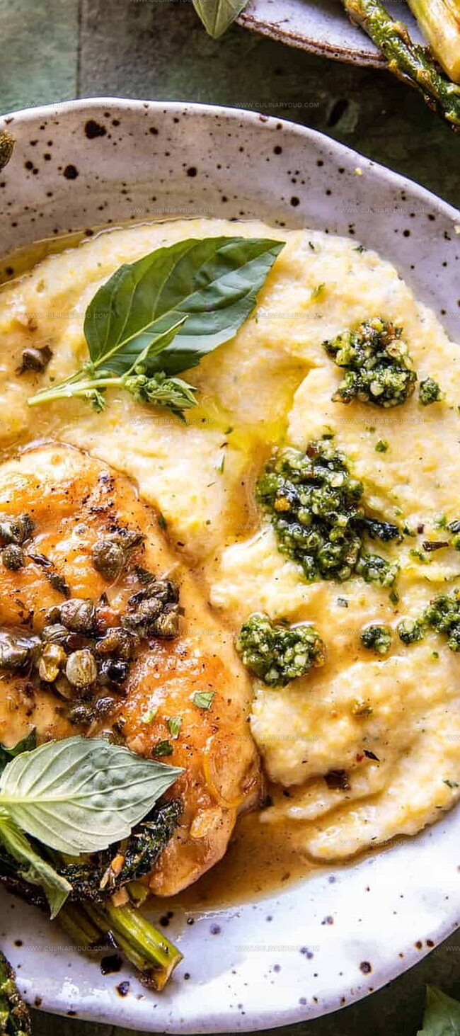 Why Lemon Butter Chicken Piccata with Pesto Polenta Shines