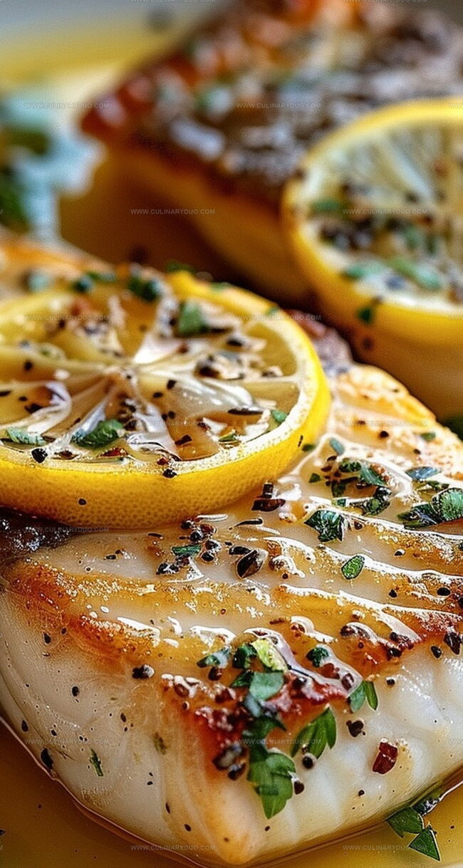 Pour the golden lemon butter elixir all over the fish, ensuring every inch gets a luxurious coating.
