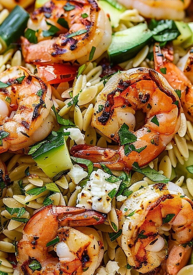 - Gently fold grilled shrimp into orzo mixture, ensuring even distribution.