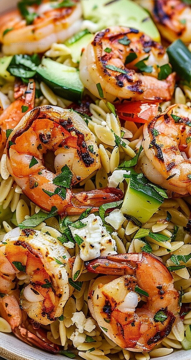Tender, perfectly charred shrimp nestle atop a bed of orzo bursting with fresh herb notes.