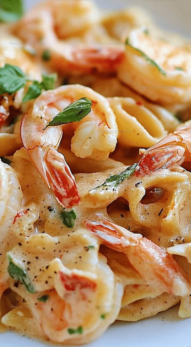 - Reintegrate seared shrimp into the creamy sauce, then fold in cooked pasta. Delicately toss to ensure comprehensive coating, gradually incorporating reserved pasta water to achieve a silky, luxurious sauce consistency.
