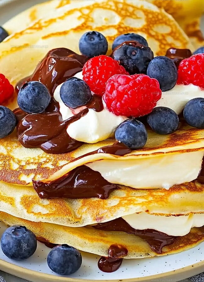 Silky Nutella cream-filled crepes promise a delightful French dessert journey through rich chocolate-hazelnut layers. Delicate pancakes folded with smooth Nutella create an irresistible treat you’ll savor with pure culinary pleasure.