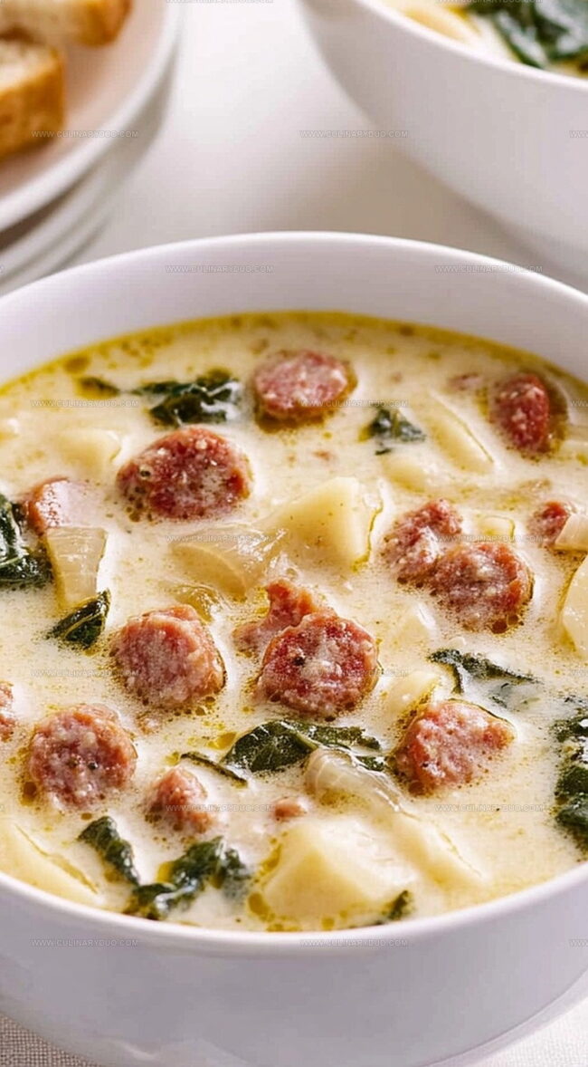 Rich, creamy broth mingles with spicy turkey sausage and tender potatoes, creating a comforting melody of flavors.