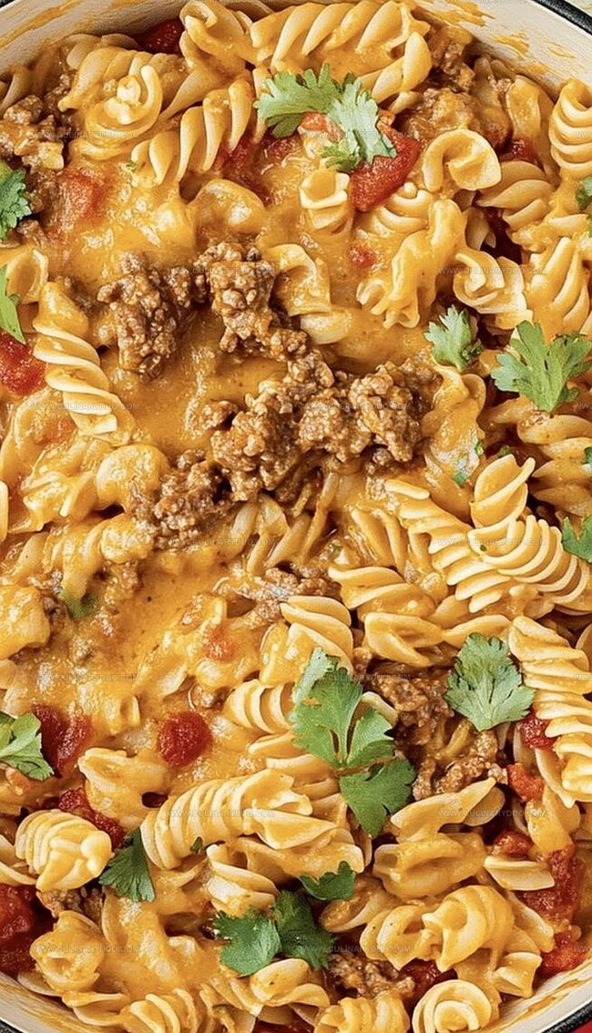 Main Proteins:Aromatics and Seasonings:Liquid and Pasta Components:Creamy Finish:Optional Garnish:Beef Taco Pasta Simple Instructions