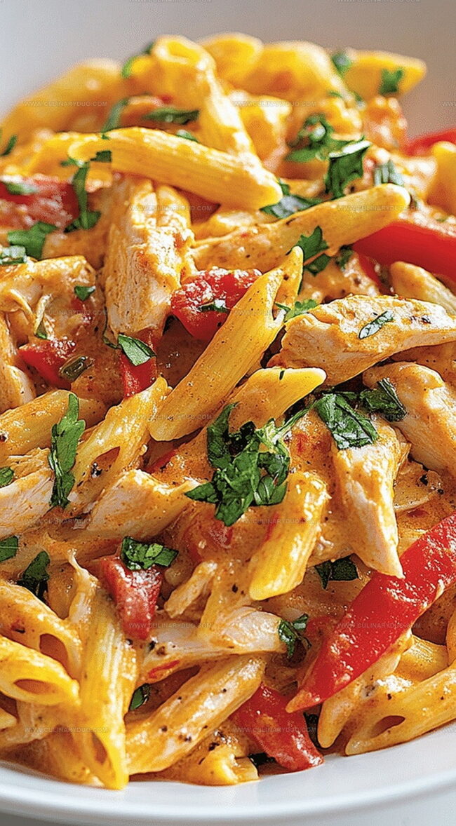 Tender chicken pieces dance with perfectly cooked pasta, creating a meal that satisfies serious hunger pangs.