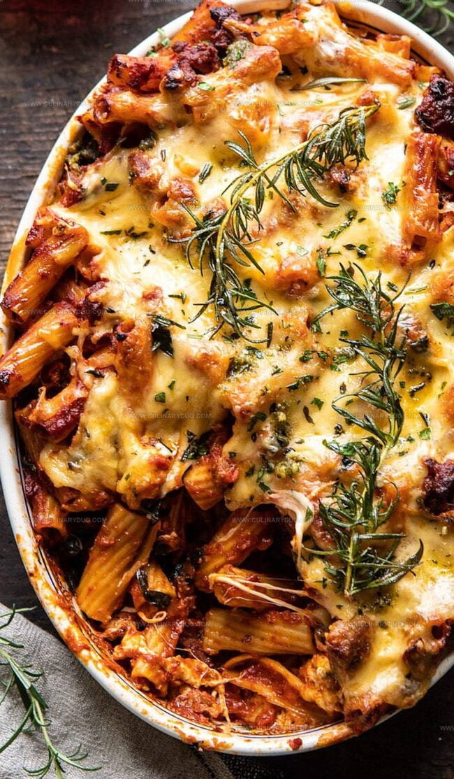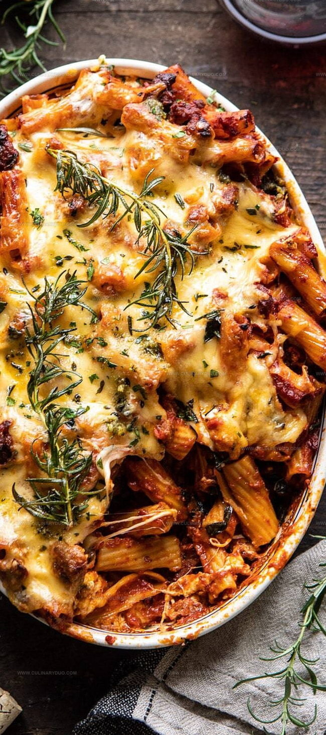 Craving a mouthwatering one pot spicy pesto cheese baked rigatoni that combines comfort and zest in every forkful?