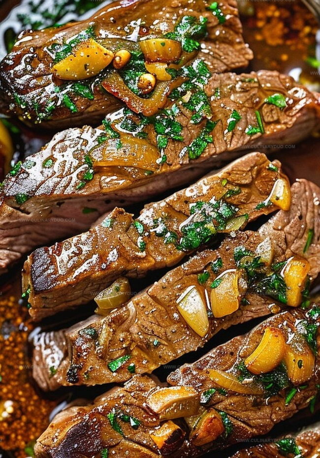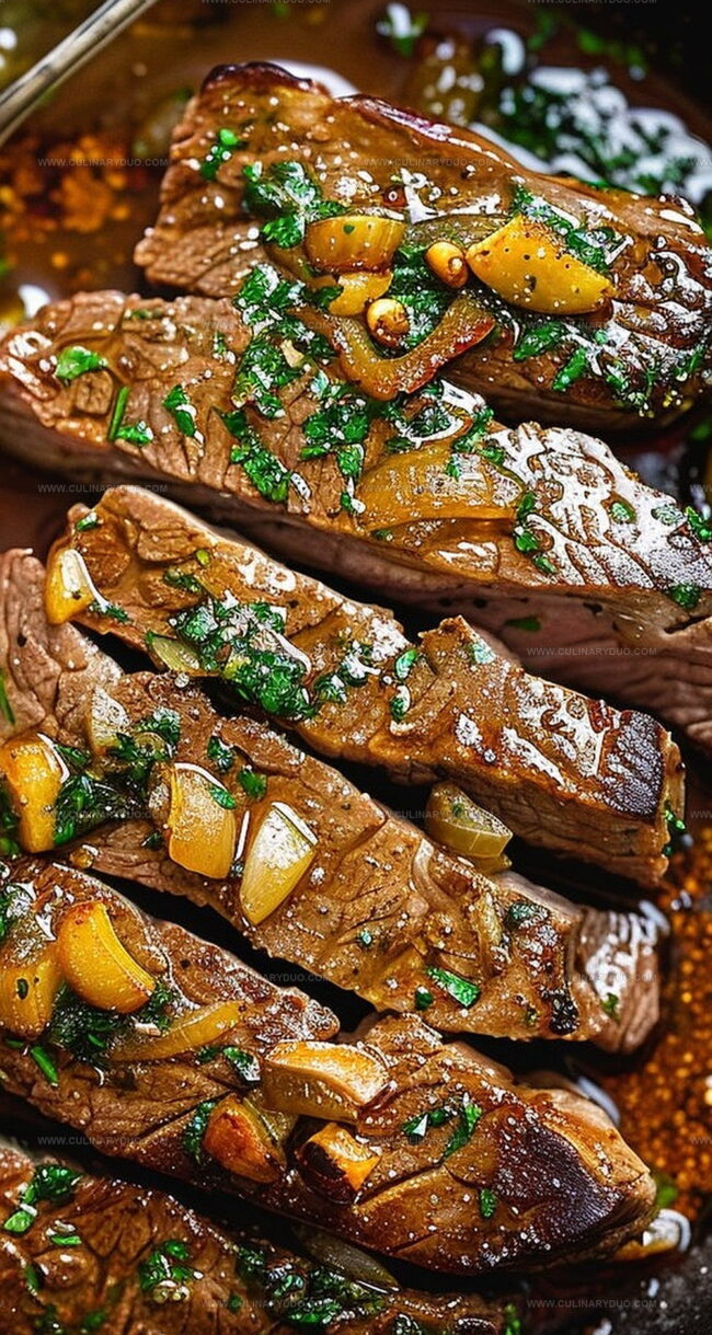 Mouthwatering pan-seared garlic butter steak promises a luxurious dining experience with rich, complex flavors. Juicy beef melts with aromatic garlic and golden butter, inviting diners to savor each perfectly caramelized bite.