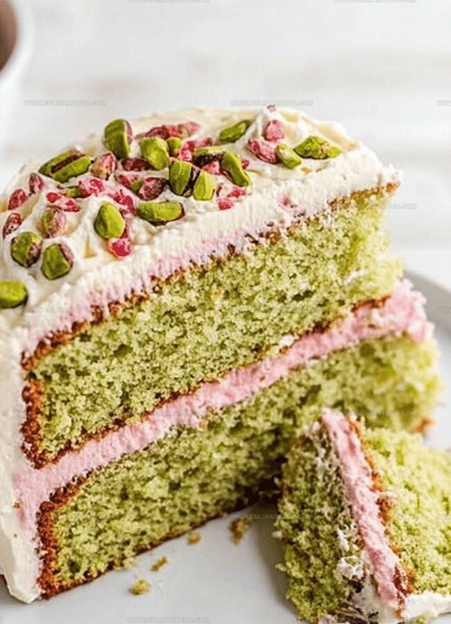 Indulgent Pistachio Cream Cake beckons with luxurious layers of nutty sweetness and silky frosting, promising a Mediterranean-inspired dessert experience. Creamy pistachio notes dance through each tender slice, inviting you to savor pure culinary bliss.