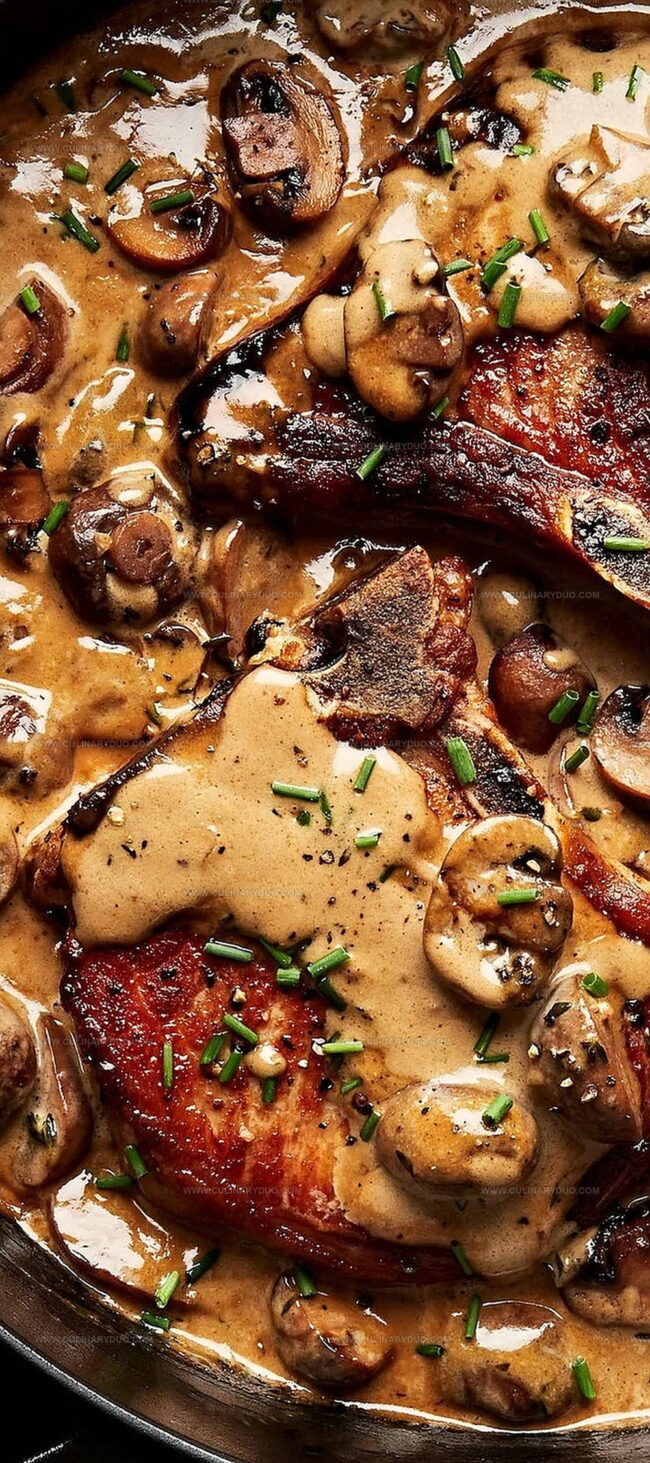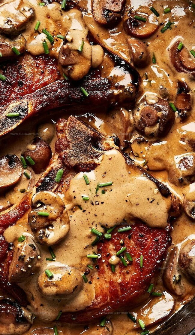 Succulent Pork Chops with Mushroom Cream Sauce blend hearty flavors from classic European cuisine. Creamy, rich sauce envelops perfectly seared pork, promising a luxurious dining experience you’ll savor with each delectable bite.