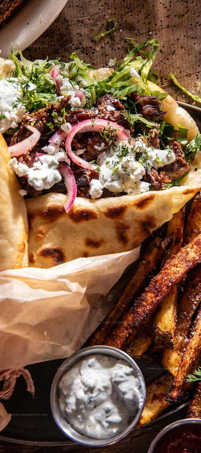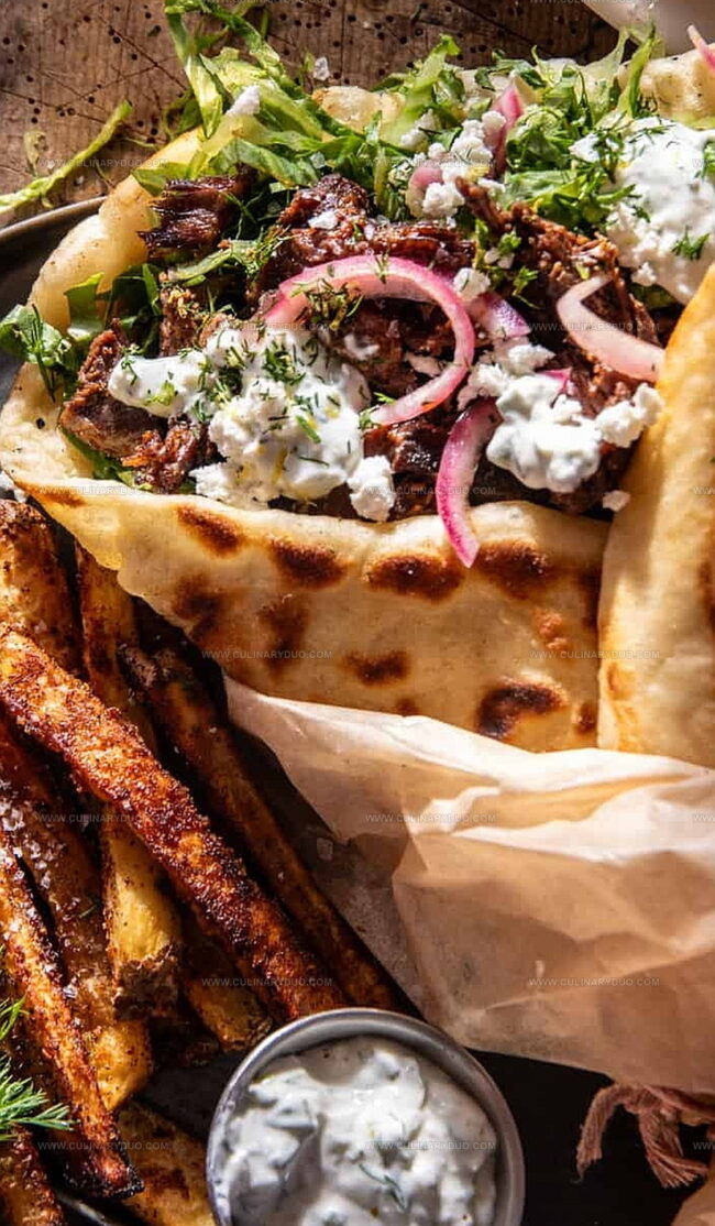 Tender, slow-cooked meat with a delightful twist takes this pot roast gyros recipe to new heights of flavor.