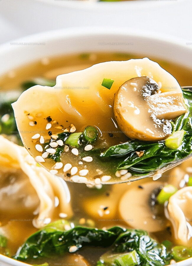 Delicate wrappers cradle savory fillings while tender mushrooms and crisp bok choy add depth to every spoonful.