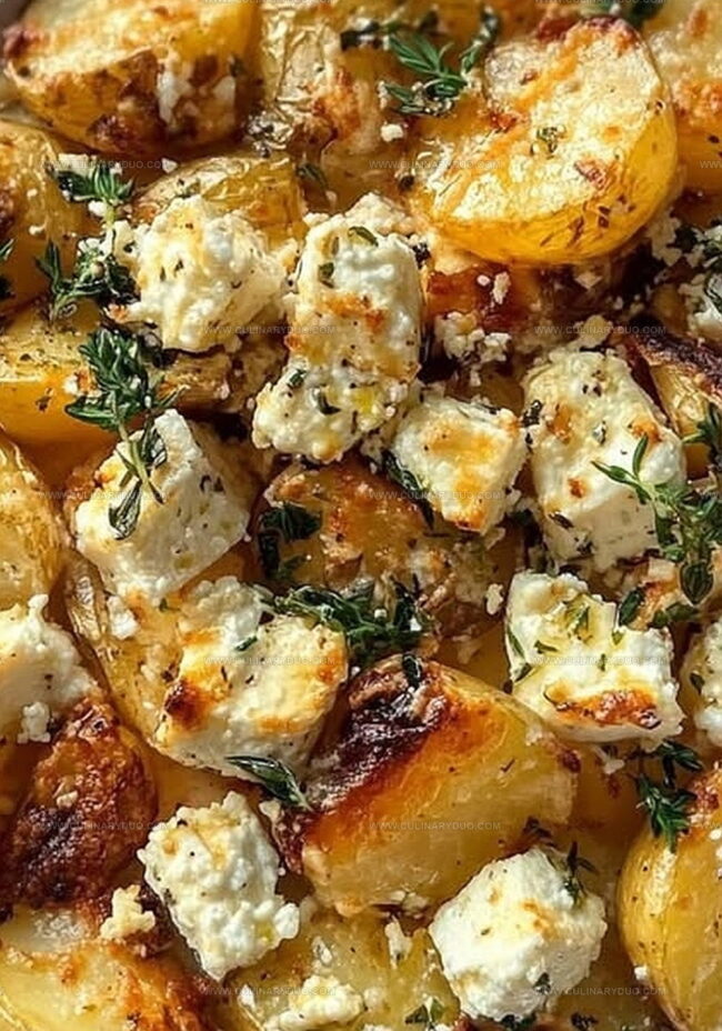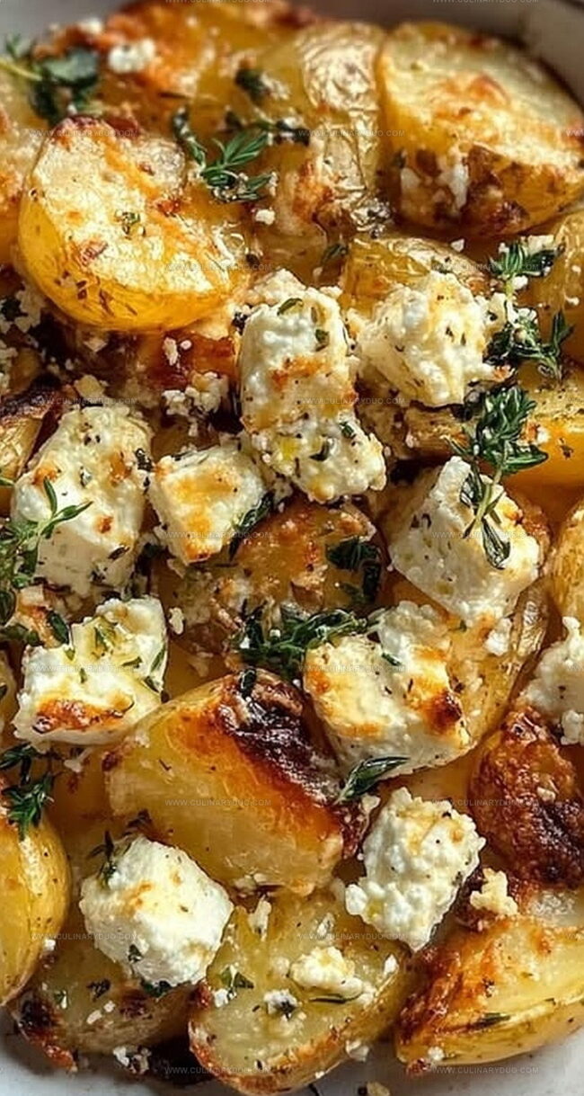 Crispy roasted potatoes dancing with baked feta promise a Mediterranean culinary adventure that will spark your taste buds.