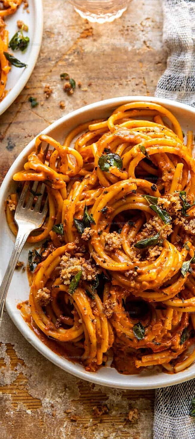 Roasted Red Pepper Alla Vodka Pasta with Cheesy Oregano Breadcrumbs Recipe