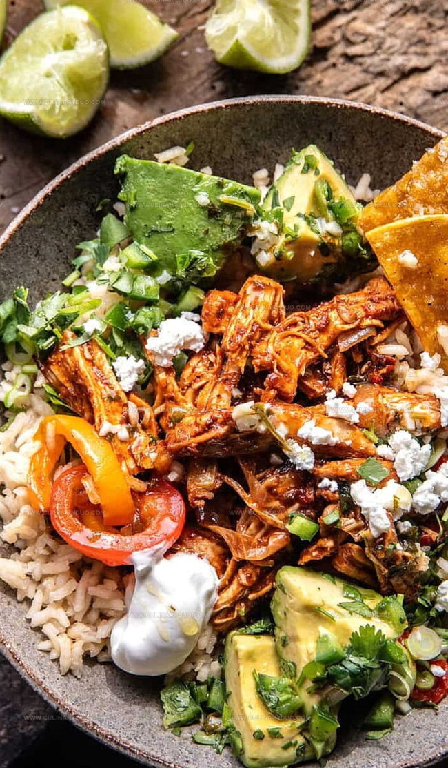 Protein:Sauce and Seasoning Ingredients:Vegetable and Fresh Ingredients:Garnish and Additional Ingredients:Chicken Tinga Bowl Steps