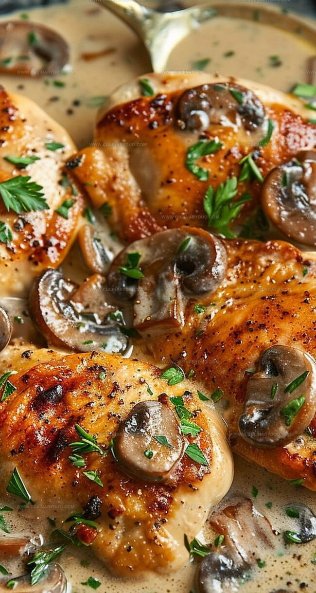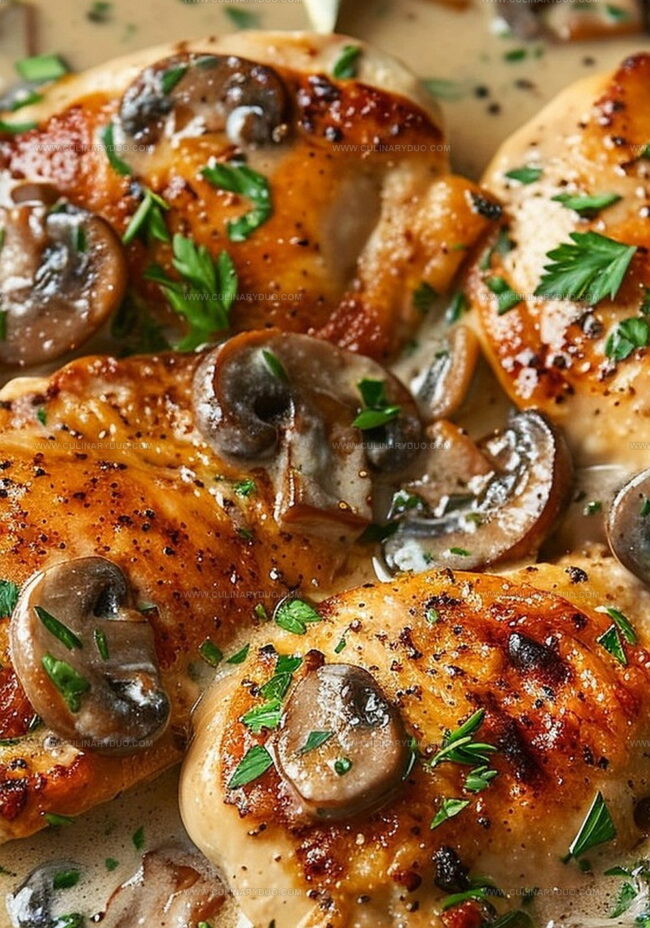 - Return chicken to the skillet, coating with the luxurious mushroom sauce. Garnish with fresh parsley and serve immediately.