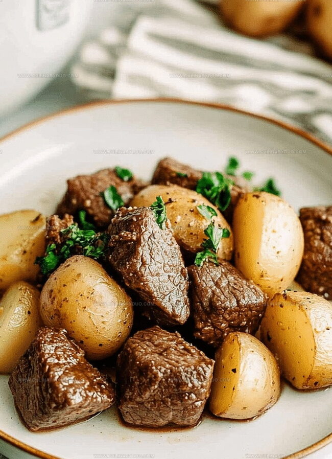 Savory Slow Cooker Garlic Butter Beef Bites & Potatoes Recipe
