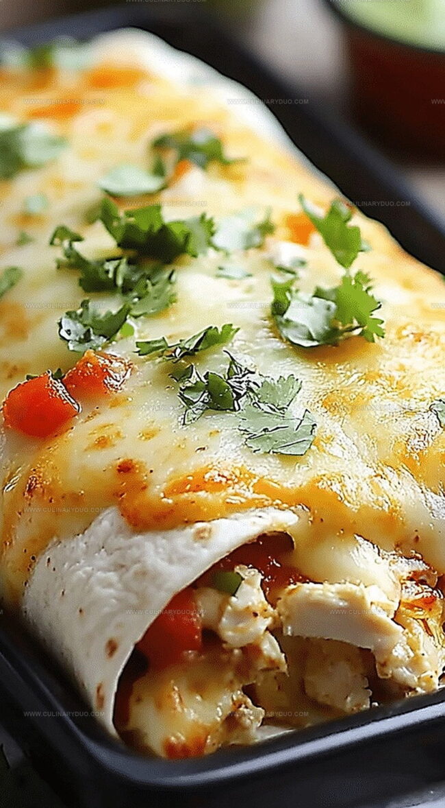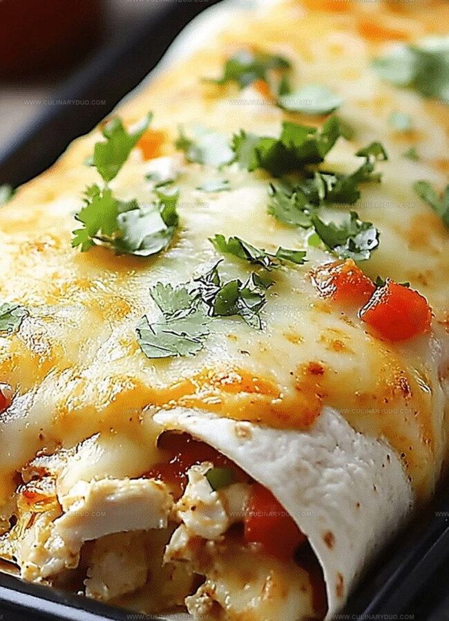 Chicken burritos smothered in a rich, creamy sauce create a mouthwatering meal that promises pure comfort.