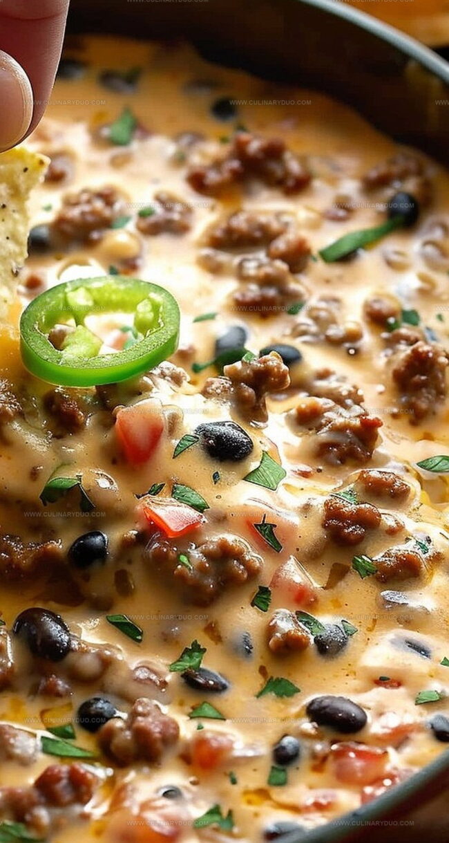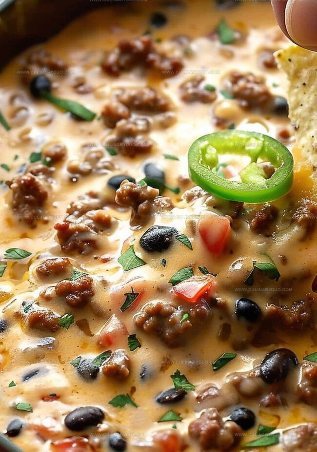 Cowboy queso sizzles with Southwestern flair, blending bold Tex-Mex flavors into a creamy, spicy dip. Hearty ground beef and melted cheeses mingle with jalapeños, creating a crowd-pleasing appetizer you’ll crave at every gathering.