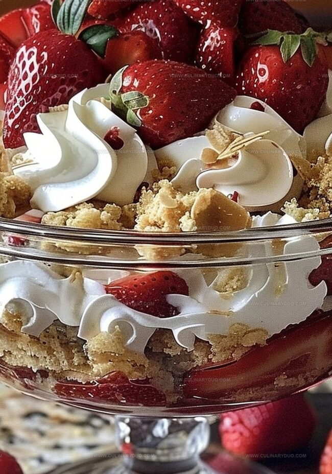 - Crown the trifle with a final arrangement of strawberry slices and a scattering of mint leaves for an elegant garnish.