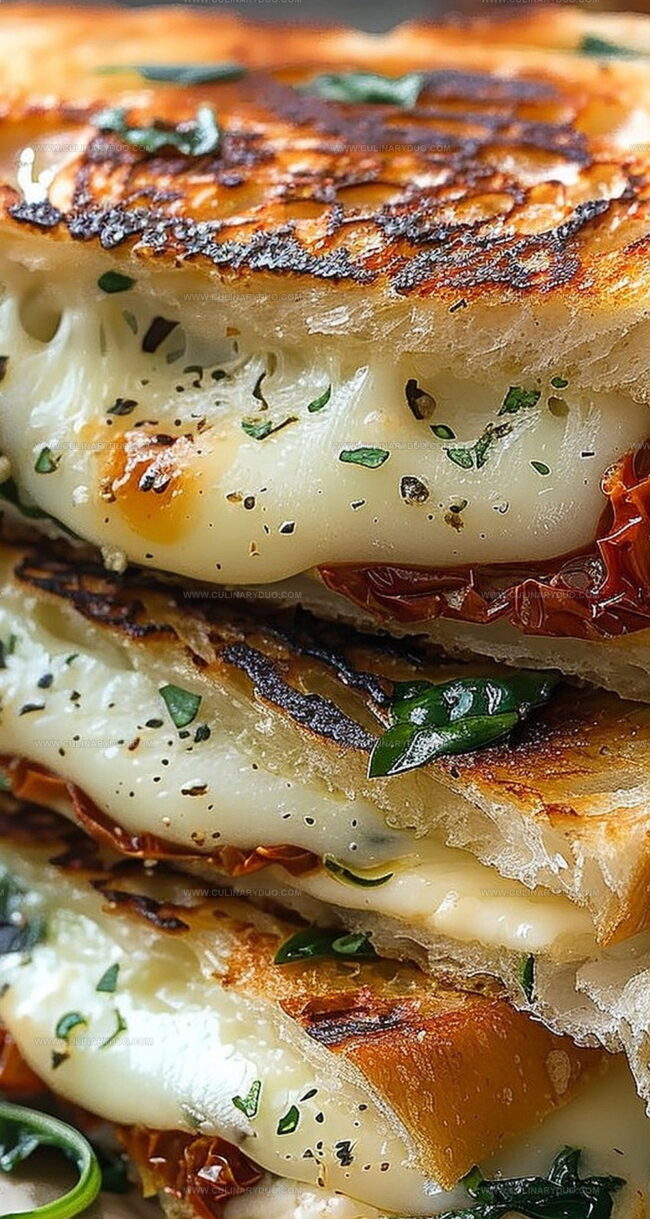 Gourmet sun-dried tomato, spinach, and ricotta grilled cheese elevates the classic sandwich with Mediterranean flair. Melted cheese, tangy tomatoes, and fresh spinach create a luxurious lunch experience you’ll savor with each delicious bite.