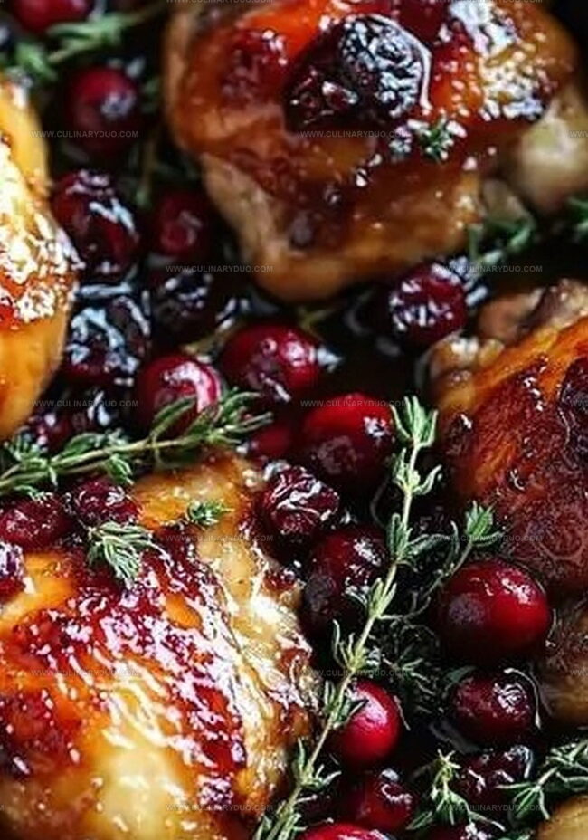 - Generously drape the prepared cranberry glaze over seared chicken, scattering fresh cranberries and delicate thyme sprigs across the surface for enhanced flavor complexity.