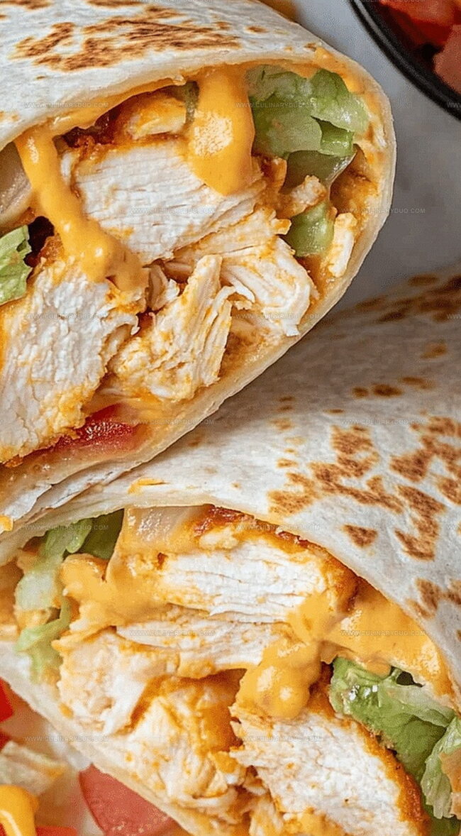 Crowd-Pleasing Potential: Kids and adults alike will love the combination of seasoned chicken, creamy sauce, and melty cheese wrapped in a warm tortilla – guaranteed to bring smiles around the dinner table.