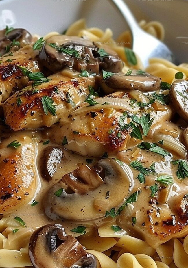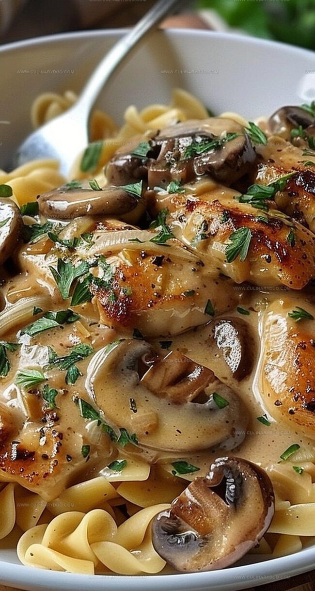 Tender Chicken Medallions in a Rich Mushroom Sauce over Buttered Noodles Recipe