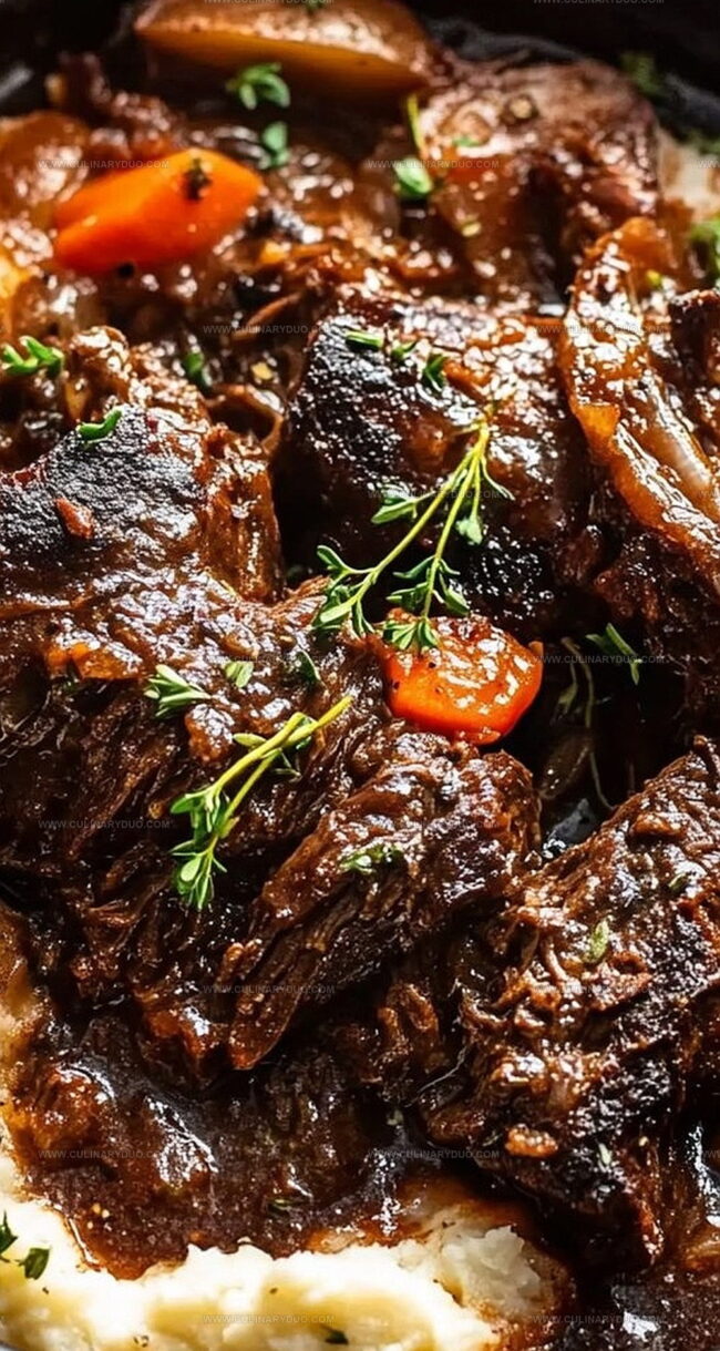 - Transfer roast to serving platter. Ladle onions, carrots, and aromatic gravy over the meat. Garnish with fresh parsley and flaky sea salt. Serve alongside creamy mashed potatoes for a deeply satisfying meal.