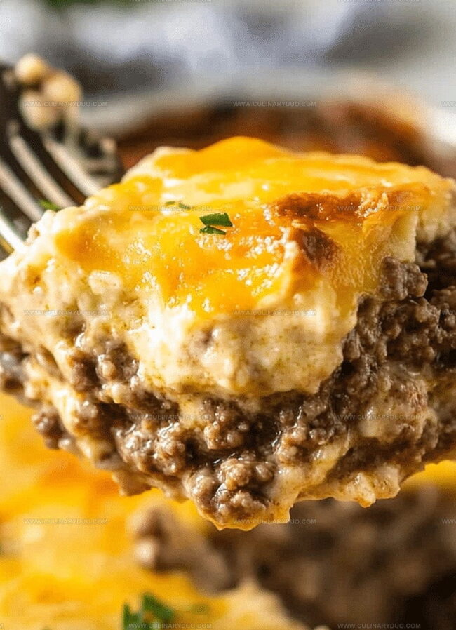 - Make sure to drain excess fat from the ground beef to prevent a greasy casserole and maintain a lighter texture.