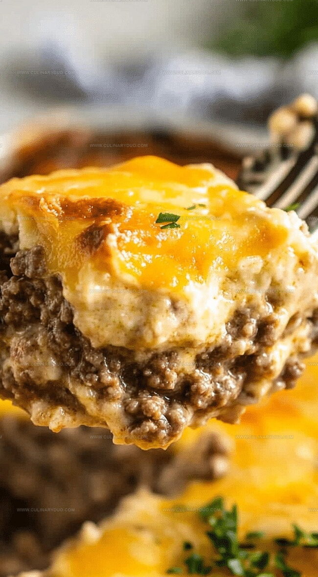 - Distribute the seasoned, cooked ground beef evenly over the potato base, creating a rich meaty layer.