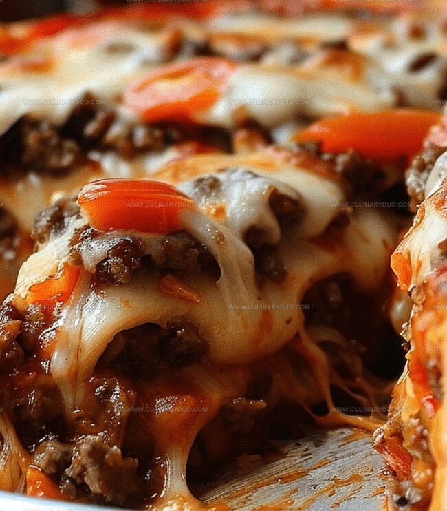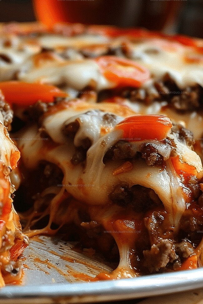 Pizza burger pie blends American comfort classics into one mouthwatering fusion dish. Cheesy layers of ground beef, melted cheese, and crispy pizza crust promise a delicious adventure you won’t forget.