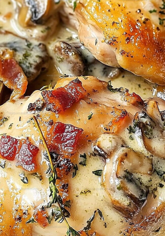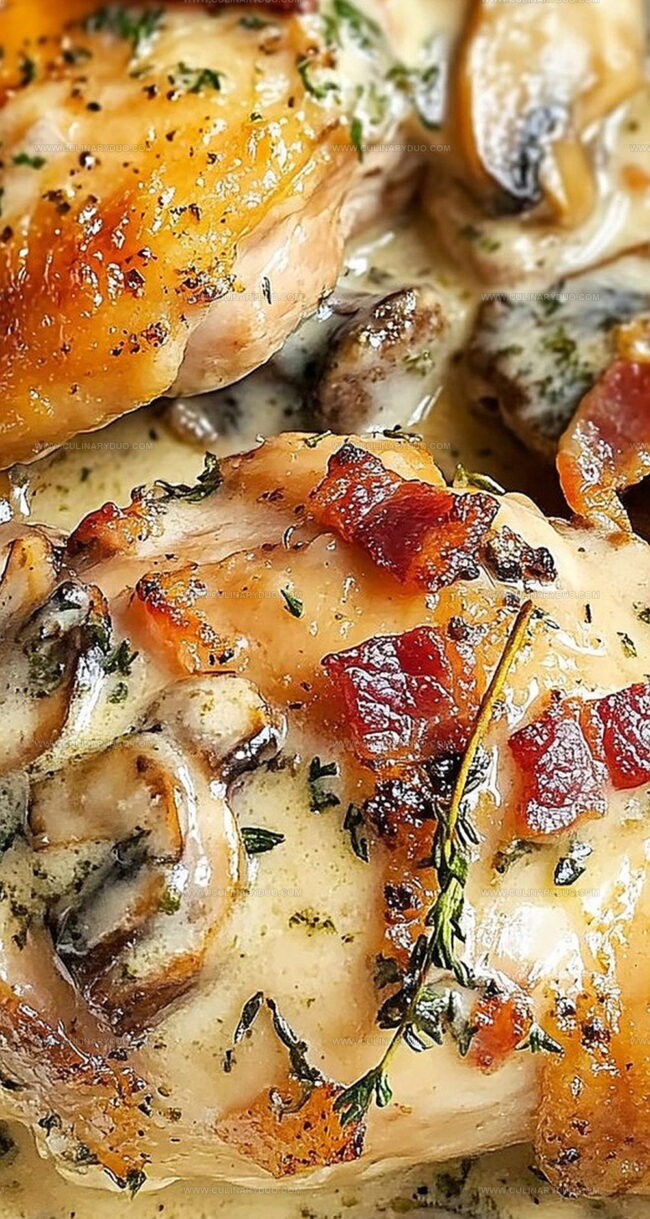 Zesty Thyme-Infused Creamy Mushroom Bacon Chicken Thighs Recipe