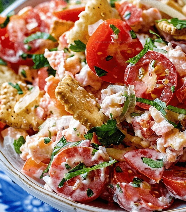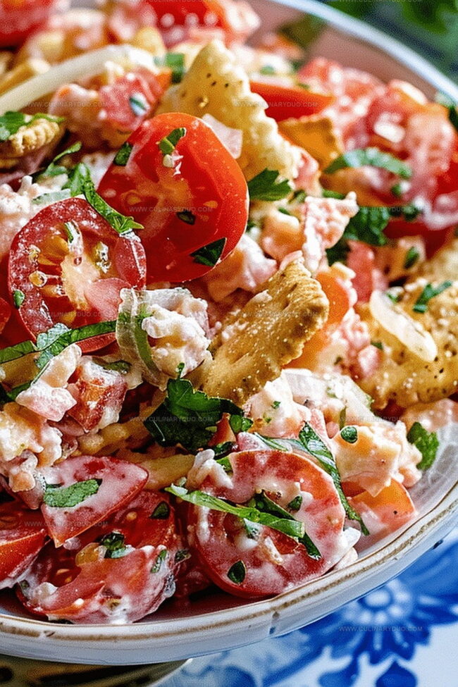 Crisp Mediterranean Tomato Cracker Salad blends rustic charm with zesty flavors from fresh tomatoes, crackers, and herbs. Crisp textures and tangy notes invite you to savor summer’s simple culinary pleasures.