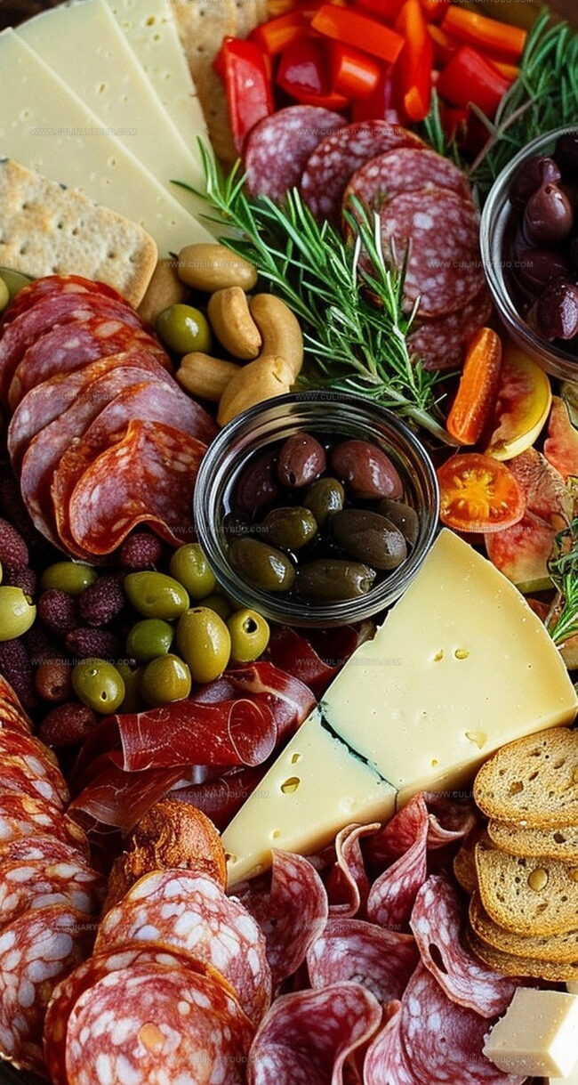 Choose a variety of cured meats like prosciutto, salami, sopressata, and chorizo. Aim for 3-4 different types to provide texture and flavor diversity.